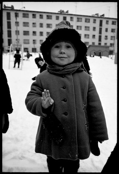 迪安・康格摄于1977年 在前苏联北极圈附近的摩而曼斯克,一个女孩伸出4根手指,告诉摄影师她的年龄。