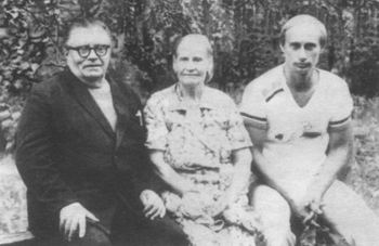 普京与父母的合影。普京一生对父母十分孝敬。普京的父母去世后都安葬在圣彼得堡谢拉菲莫夫斯基公墓,夫妻二人葬在一个十字架下,这些年不顾车臣匪徒的追杀令,普京多次回故乡为父母扫墓。