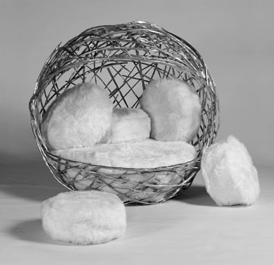 巢椅材料:青铜和皮毛这件艺术品的创作灵感主要源于一个鸟巢,一个让人放松的空间,它使人想起传统的中国式的床。;