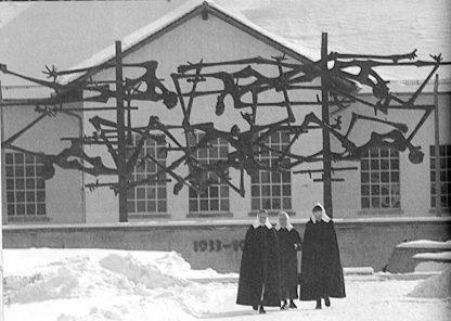 一进铁栅栏大门,右手就是点名广场。这里每天都准时例行点名,风雨无阻。那些像我一样戴眼镜、剃光头的知识分子,由于精神自由而被限制身体自由。除了每天的劳改,他们被强令集中到“点名广场”,稍息、立正,参加准军事的队列训练。不论工程师、科学家、艺术家、作家……还是国家领导人,包括抵制德奥合并的奥地利总理许士尼格都在这里接受思想改造。即使体弱、生病、奄奄一息的垂危者也必须参加点名,其他人不得扶助。任何迟到、队列不整、违犯监规都要在点名时被党卫军予以当众惩处,杀鸡儆猴。这些瘦骨嶙峋的犯人单衣、光头站在烈日或雪地里,每次点名、听领导训话都要持续一个多小时。如果有人缺席、迟到,或发生任何让国社党不高兴的违规事件,点名都要无限延长。许多体弱者由于身体不支,颓然倒毙,就会被送入西院的焚尸炉,作火化处理。