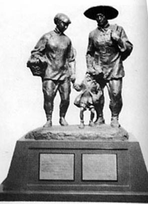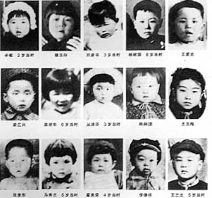左图:孩童时代的日本遗孤 右图:中国养父母碑(沈阳市)