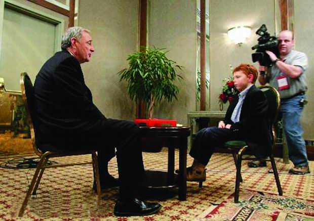 新华社以惯常的简洁方式配图报道了如下简讯:“1月11日,加拿大自由党领导人、现任总理保罗・马丁在多伦多就加拿大大选问题接受CTV电视网8岁的小记者丹尼尔・库克的采访。丹尼尔・库克被CTV电视网聘为报道加拿大大选的记者。加拿大大选将于1月23日举行。”整段报道中只有“8岁”两个字称得上新闻,却也许是足以载入传媒史册的一件大事,加拿大电视台聘请了一位“童工”进行严肃的新闻采访。