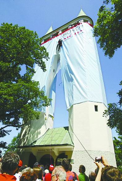 德国一座名为“短裤”的高塔被穿上世界上最大的短裤,庆祝其100周年。