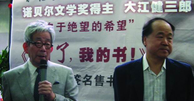 9月9日下午,大江健三郎在北京图书大厦举办了新书《别了,我的书》的签售活动,活动开始前一小时,读者已经开始排队等待。莫言等作家也亲临捧场。