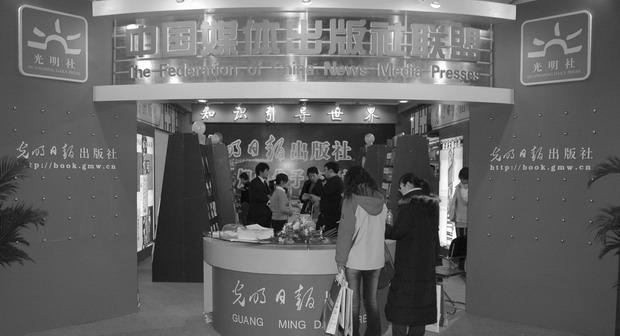 北京图书订货会上,中国媒体出版社联盟一展新颜,广受瞩目。图为参展的光明日报出版社展台。