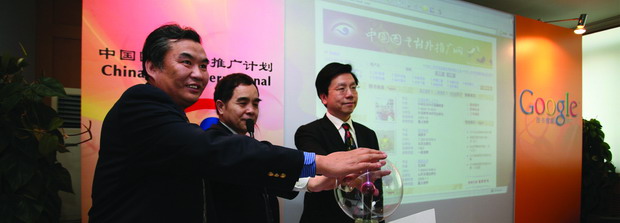 )共同启动“中国图书对外推广计划”网站的按钮。据“计划”负责人表示,“选择与Google合作,有两方面考虑:第一,看中的是Google的强大的技术支持,第二,看中的是Google成熟的多语言翻译系统。”