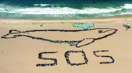 美国洛杉矶学生在海滩上的集体雕塑:“鲸鱼SOS”