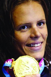 奥运会金牌得主、20岁的法国游泳名将洛尔・玛瑙窦(Laure Manaudou)最近“私奔”到了其英俊的意大利男友卢卡・马林的家乡,这让法国体育官员有些不知所措,并引发了外交上的激烈争辩。洛尔保持有36项法国记录、6项欧洲记录与3项世界记录,在雅典奥运会上曾获得金、银、铜牌,是明年北京奥运会法国在游泳项目上的几乎唯一希望。去年,有43.9%的投票者把她选为法国最佳运动员,名声在足球运动员齐达内和亨利之上。私奔后,她发表声明说自己已离开了法国南部小城卡内(Canet)的游泳俱乐部,去投奔“我生活中的爱情。我现在选择的是爱,我要与他生活在一起,并跟他生个孩子”。在记者招待会上,她透露将在都灵的一家游泳俱乐部里继续训练,并否认自己的行为属一时冲动,但坦言其男友见到她突然出现在自己面前并要长期住下时来有些惊讶。