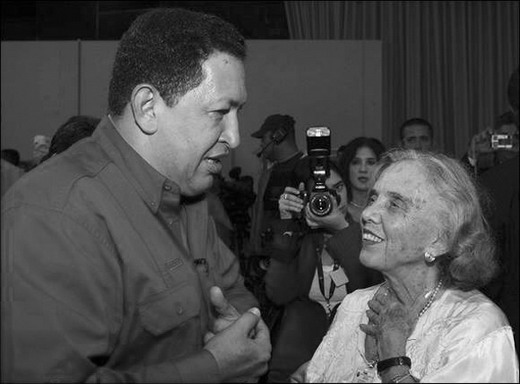 75岁的波兰裔墨西哥女作家埃莱娜・波尼亚托夫斯卡(Elena Poniatowska),是前来加拉加斯领受委内瑞拉颁发给她的罗慕洛・加列戈斯(Rómulo Gallegos)奖的。8月5日,波尼亚托夫斯卡女士出现在查韦斯每周一次的电视独角戏《总统你好!》(Aló Presidente)的节目现场,查韦斯仍然穿着红衣,一个人坐在大办公桌后面,波尼亚托夫斯卡则与现场观众们在一起,坐在总统的对面。女作家赞扬了查韦斯总统的英明领导,总统很高兴,随即热情洋溢地唱出了著名的墨西哥民谣《阿黛丽达》(Adelita),表示感谢。观众闻之掌声如潮,女作家也乐不可支,抚掌大笑。