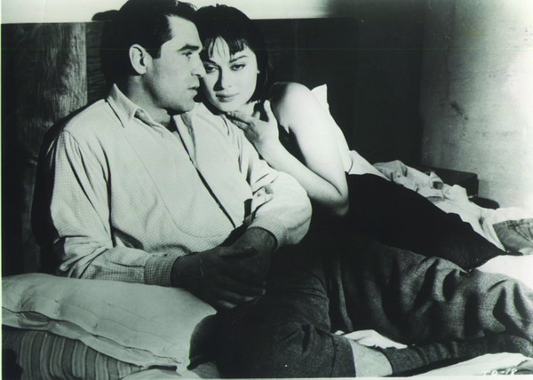 《夜》(LaNotte,1960)选择了曾经在《朱尔和吉姆》中活力四射、无畏无惧的珍妮・莫罗饰演已经厌倦生活的丽迪娅。她的作家丈夫吉奥瓦尼同样也没有生活的热情,他同样困惑于横贯于他们面前的世界,但他显然并没有感受到丽迪娅那种强烈的痛苦。区别在于丽迪娅仍然保存着女性无法被磨灭掉的敏感。影片的开始吉奥瓦尼的作家朋友托马索因绝症而住院,医生给他打了一针麻药,然后宣布:“现在你已经感觉好点了。”这完全是一付交付给了现代科学的躯体,医学逻辑完全压抑了人的个体感受。然而托马索却感到了完全的解脱,他感到第一次从那些没完没了的日常事务中解放了出来,叫来香槟,饮酒作乐。丽迪娅无法忍受她所见的一切,于是离开医院,开始了她一天的城市漫游。