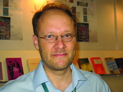 会场内荷德两国的这一格局,似乎有某种文化地理学上的象征意义――小国与大国,小语种与大语种。然而,面对强邻,NLPVF的会长亨克・普罗佩尔(Henk Propper)却公开设想,将在几年内谋取和德国一样的地位――申请北京国际图书博览会的主宾国资格。