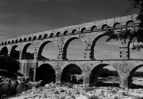 今日的加尔河,早已水量骤减,仅见一脉汩汩细流,我不知这是否为全球性水资源匮乏的一种表征?只见大部分桥墩都矗立在裸露的岩岸上,失却了清冽河水的浸渍与抚慰后,竟显得那么枯涸、脆弱。我想,若数千年前便生态环境拮据、水贵如油的话,罗马人还能那么随心所欲去培植他们的洗浴文化,还值得如此戮力费心地营造这一巨石建筑?