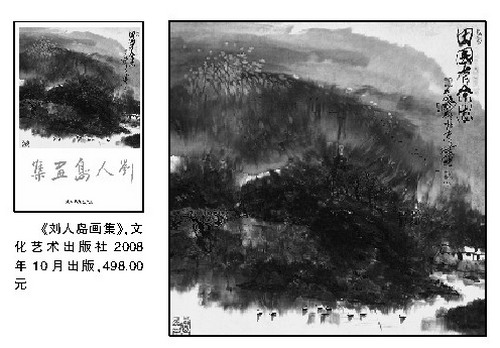刘人岛是个成就颇丰的青年山水画家,这是《刘人岛画集》给我的第一印象。他的许多画作,如《极天地大观》、《?山风光》、《夷水情》、《淡烟疏柳媚晴滩》、《观山观云天》、《岛生万物》、《粉黛神韵》、《浑山韵云