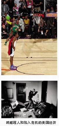 第52届世界新闻摄影比赛(荷赛)、第58届NBA全明星周末、第59届柏林电影节,2009年初,这些历史悠久的活动如期登场。荷赛年度图片是美国摄影师安东尼的作品《陷入危机的美国经济》,2008年3月26日摄于美国俄亥俄州克利夫兰,全副武装的警探正在检查一栋因原房主无力偿还房贷被查封的住宅。金融海啸起因于次贷危机,危机的苗头虽然酝酿已久,但直到2008年第二季度随着美国房价下跌才开始彰显,到9月雷曼兄弟破产达到阶段性高潮,年度图片奖表彰的也许正是摄影师超人的新闻敏感度。克利夫兰骑士队有NBA最火的小皇帝勒布朗・詹姆斯,他表态要参加明年的扣篮大赛,而今年扣篮大赛冠军属于身高1米75的土豆内特・罗宾逊,他绿衣绿裤,手抓绿宝石色的篮球飞越了去年身披红斗篷扮演超人一举夺冠的霍华德扣篮成功。柏林电影节金熊奖得主则是西班牙和秘鲁合拍的《伤心的奶水》。