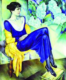 阿尔特曼是“犹太艺术促进协会”(Еврейское общество поощрения художеств)的创建者之一,他努力设法让古犹太的象征主义和当代的“新艺术”(Art Nouveau)手法结合起来。后来,他使自己的作品接近于立体派和未来派的先锋艺术,最后终于以一位构成主义(Constructivism)画家而闻名。他为安娜・阿赫玛托娃所作的这幅肖像画描绘安娜穿一身柔软的蓝色外衣,一块有折叠感的黄色披肩,明显表现出画家立体主义的风格特点。此画最初于1916年在阿克梅派的刊物《阿波罗》上发表。