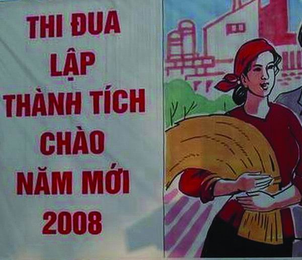 当然,单个拉丁字母是有些许意象美的,原因正在于它略似方块形的汉字。拉丁化单词形体扁长注定了很难变形。方块汉字则像一团面筋,可长可扁,或圆或三角,给书写者挥运性情或调节章法以很大便利。方块又似一个点,向任何一方排去都自然成行。越南街头虽有下排的双条标语,但各字宽度过于悬殊和参差,殊失汉字对联的“对立”统一之美。