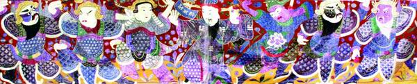 20世纪60年代,中国美术馆就收藏了王树村藏品中的三百余件年画粉本,这些粉本均为孤本,非常精美与珍贵。2004年、2008年,王树村先后两次将其珍藏的年画、刺绣等民间美术品共计230余件捐赠给中国美术馆。在这之前,很多外国人提出要以重金购买他的藏品,但都被婉言谢绝,他不无幽默地说:“他们拿着那么多张一样图案的钞票换我不重样的年画,那怎么行?”这些民间艺术品存世极少,部分为孤本,具有很高的艺术价值、文化价值和文物价值。捐赠品中最为珍贵者当为4幅明代手绘门神,人物形象古朴生动,沥粉堆金,是罕见的珍品。还有一对清代宫廷用的门神,尺幅大于民间用门神,是杨柳青为宫廷定做的,也是采用沥粉堆金的工艺,在当时的造价是非常高的。这对门神不是一次性使用,而是反复使用于每年的春节,存世者极少。此外,北京木版年画也极为罕见,苏州桃花坞年画流失得非常严重,市面上也几乎很难找到,天津杨柳青的一些年画艺术水平很高,是少见的精品。7件大型戏出绣幛均为清代四川民间绣坊所作,绣工精美,造型古朴,是难得的绣品。