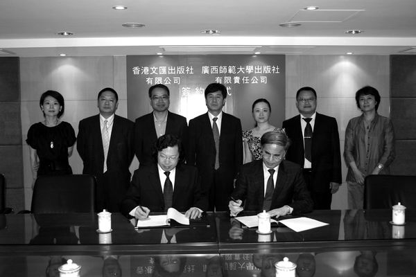 第20届香港国际书展期间,广西师范大学出版社有限责任公司与香港文汇出版社有限公司在香港文汇报总部举行了战略合作协议签字仪式,双方就图书版权贸易、国际汉语教育推广、期刊合作、新媒体领域及其他领域的拓展达成多项合