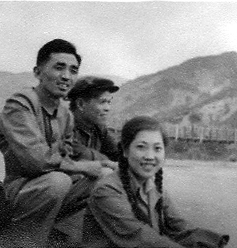 江晓天(左)、萧也牧(中)、毕方1955年在四川灌县