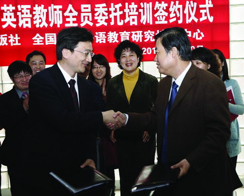 4月20日,“延安市2010-2012年中小学英语教师全员委托培训”合作协议签署仪式在外语教学与研究出版社举行,至此,外研社正式启动了为陕西省延安市“量身定制”的三年教师培训计划,将分期分批培训延安市小学、初中、高中英语教师。