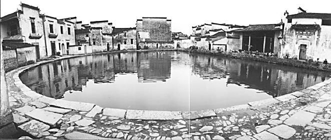 位于黄山西南麓的宏村村落开创了徽派建筑里别具特色的水榭民居模式。