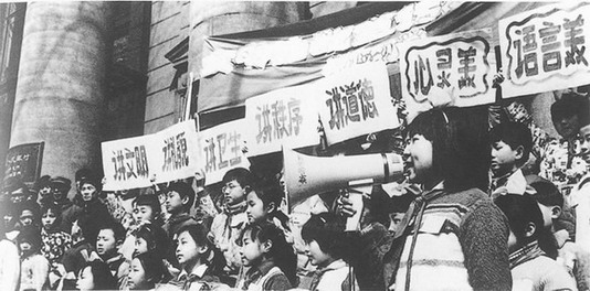 南京市的小学生在街头宣传“五讲四美”
