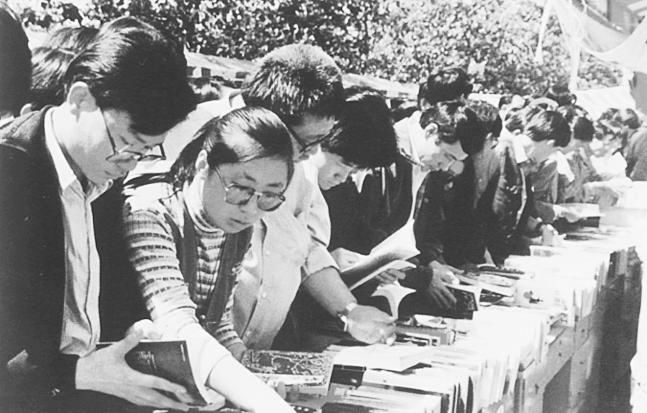 在北京的书市上选购图书的人们