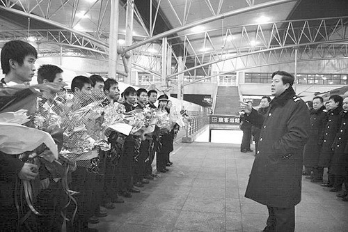 命令如山。13:30,我来到库内,和乘务员清点备品,整理卧具。14:50,列车由沈阳北站准时出发,我将所有乘务员集中到硬座10号车厢,进行了短暂的战前动员。尽管由于连续出车,乘务员都有点儿疲惫,但一想到能够亲自参加支援南方春运,大家还是有种莫名的兴奋。