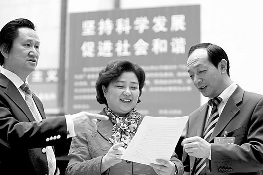 关注劳动者的权益3月12日,江苏代表团刘?(左一)、陆亚萍(左二)和杨展里(左三)代表在一起审议政府工作报告。曾经蝉联两届中国十大经济女性年度人物的陆亚萍一直关注劳动者合法权益的保护。他们认为随着依法治国工作的不断推进,在过去的五年中劳动者的权益开始得到实实在在的保障。本报记者刘新武摄
