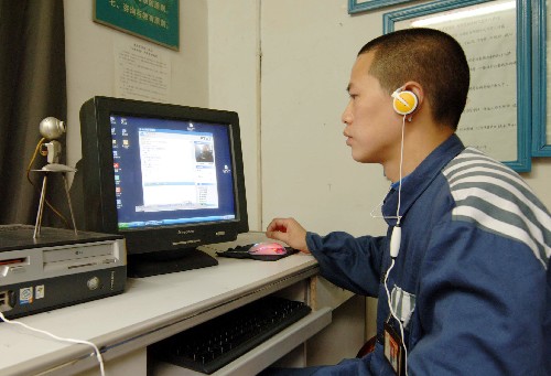 3月27日,重庆市监狱的一名服刑人员正在通过“心语热线”向民警进行法律咨询。