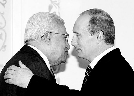 4月18日,俄罗斯总统普京(右)在位于莫斯科郊外的总统别墅中会见到访的巴勒斯坦民族权力机构主席阿巴斯。按计划,双方将讨论中东地区局势,以及6月在莫斯科召开中东和会的细节问题。