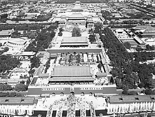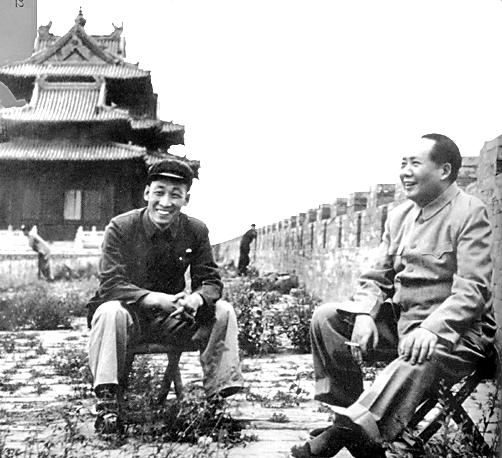 1954年,毛泽东主席在故宫城墙上视察。