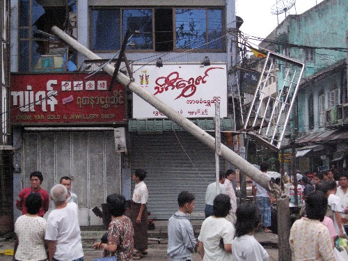 5月3日,仰光市街头一片狼藉。当日,缅甸最大城市仰光遭孟加拉湾特强气旋风暴(相当于中国的台风)袭击。新华社发