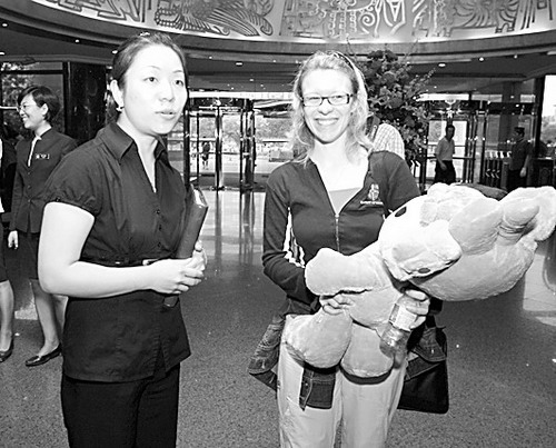 7月14日,北京国际饭店作为奥运签约酒店迎来首位奥运客人――来自奥地利的伊莎贝尔。