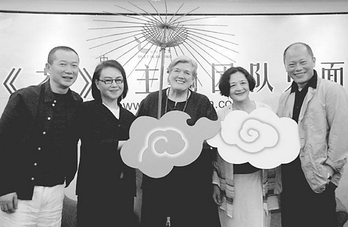 作为“相约北京-2008”奥运重大文化活动内容之一,谭盾歌剧《茶》(中国版)将于7月30日亮相国家大剧院,其主创团队阵容日前在北京揭晓――谭盾(左一)担任指挥,两位台湾电影金马奖影后江青(左四)和杨惠珊(左二