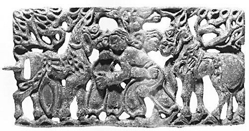 战国角抵图铜牌饰(陕西长安客省庄出土)