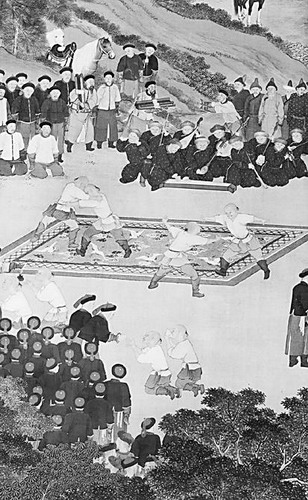 清郎世宁《塞宴四事图》局部摔跤 (故宫博物院藏)