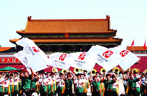 7月27日,北京奥运村正式开村。来自北京师范大学附属中学的50名中学生在升旗广场首次唱响了奥林匹克教育主题活动――“同心结”的主题曲。作为中国奥委会的结对学校,他们还参加了中国代表团入村的欢迎仪式。而此时,中国队参赛的一些比赛门票就拿在他们手里,能在现场为中国的胜利呐喊助威,孩子们早已兴奋得不行了。