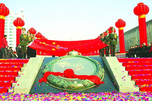 2003年春节,由华夏文化纽带工程组委会和台湾中华文化艺术基金会从海峡两岸汇土制成的第一块《中华故土地图》文化标志在北京中华世纪坛正式安放。