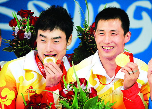 从4年前雅典奥运会的第四名,到今天北京奥运会的金牌得主,王峰已经实现了一名运动员的最高理想。尽管已经在跳板上度过了21个寒暑,但王峰并没打算就此离开跳板。他说:“只要中国跳水还需要我,我愿意干到2012年。”秦凯则是如日当空,在本届奥运会上,他身兼男子跳板双人和单人两大比赛任务。