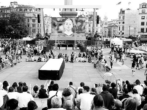 伦敦市中心特拉法加广场上的大型电视屏幕。