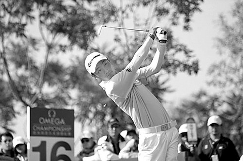 2008年欧米加中国高尔夫巡回赛收官之战10月12日在北京龙熙温泉高尔夫俱乐部落幕,天津选手周君以282杆,低于标准杆6杆的成绩夺冠。图为周君在比赛中。本报记者罗京生摄