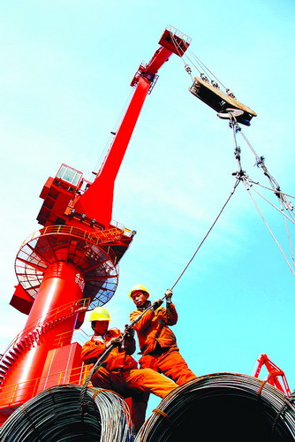 初冬时分,记者一行来到辽宁营口港。港口上,巨无霸般的起重机如一道霹雳划过蓝天;靠泊作业的货轮旁,海鸥不停地飞翔盘旋;远处庆祝集装箱专列启程的锣鼓声欢天喜地响彻耳旁。天虽然已渐凉,港口却是热火朝天,生产建设如火如荼。