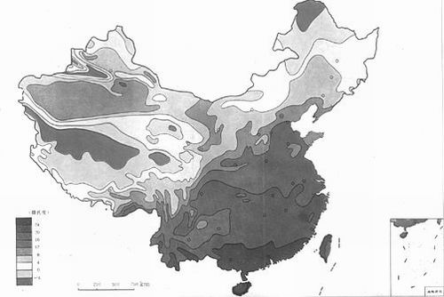 中国不同地区的年平均气温