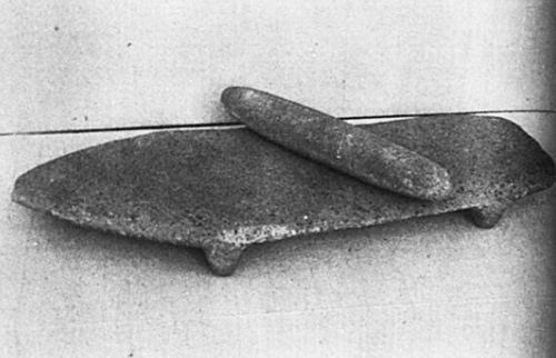 河北磁山出土的新石器时代的石磨盘、磨棒