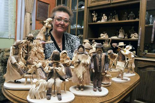 1月19日,在匈牙利的孔海杰什市,乌利奇尼・阿尔帕德妮展示她用玉米皮制作的玩偶。退休幼儿园女教师乌利奇尼・阿尔帕德妮擅长用玉米皮制作玩偶,反映匈牙利农民的生活。她制作的玩偶不染色,都是利用玉米皮的天然色彩,制