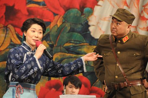 2月13日,在河北省平山县平山会堂,国家京剧院演员在表演《沙家浜》选段。当日,国家京剧院演职人员一行数十人来到革命老区河北省平山县,为老区群众表演《红灯记》、《沙家浜》等10余个京剧名段和红色经典唱段,深受老区