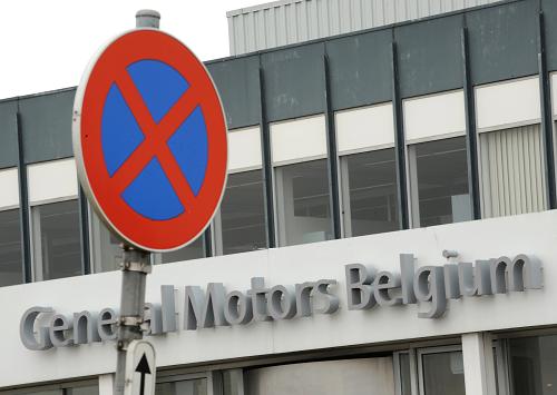 2月17日拍摄的照片显示,一个禁停的交通标志竖立在比利时安特卫普港区通用汽车公司欧宝汽车厂前。据美国媒体报道,通用汽车公司为获取美国政府的救助资金,正在考虑关闭其在比利时安特卫普和德国波鸿的欧宝汽车厂,并将