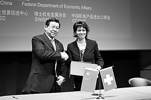 中国贸易投资促进团受到了瑞士经济界的热烈欢迎。在瑞期间,中瑞企业就能源、纺织品、钟表、技术软件、节能环保及服务贸易等领域的合作进行了积极探讨,双方对加强两国在贸易、投资及高新技术等方面的合作均表现出浓厚兴趣,并签署了采购和合作意向,数额达3亿多美元。另外,中瑞双方还共同签署了《关于建立中瑞节能环保领域经贸合作工作组的备忘录》。