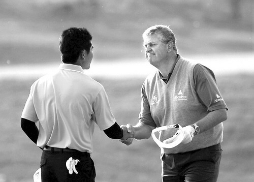 图为梁文冲与蒙格马利赛后握手致敬。罗京生摄